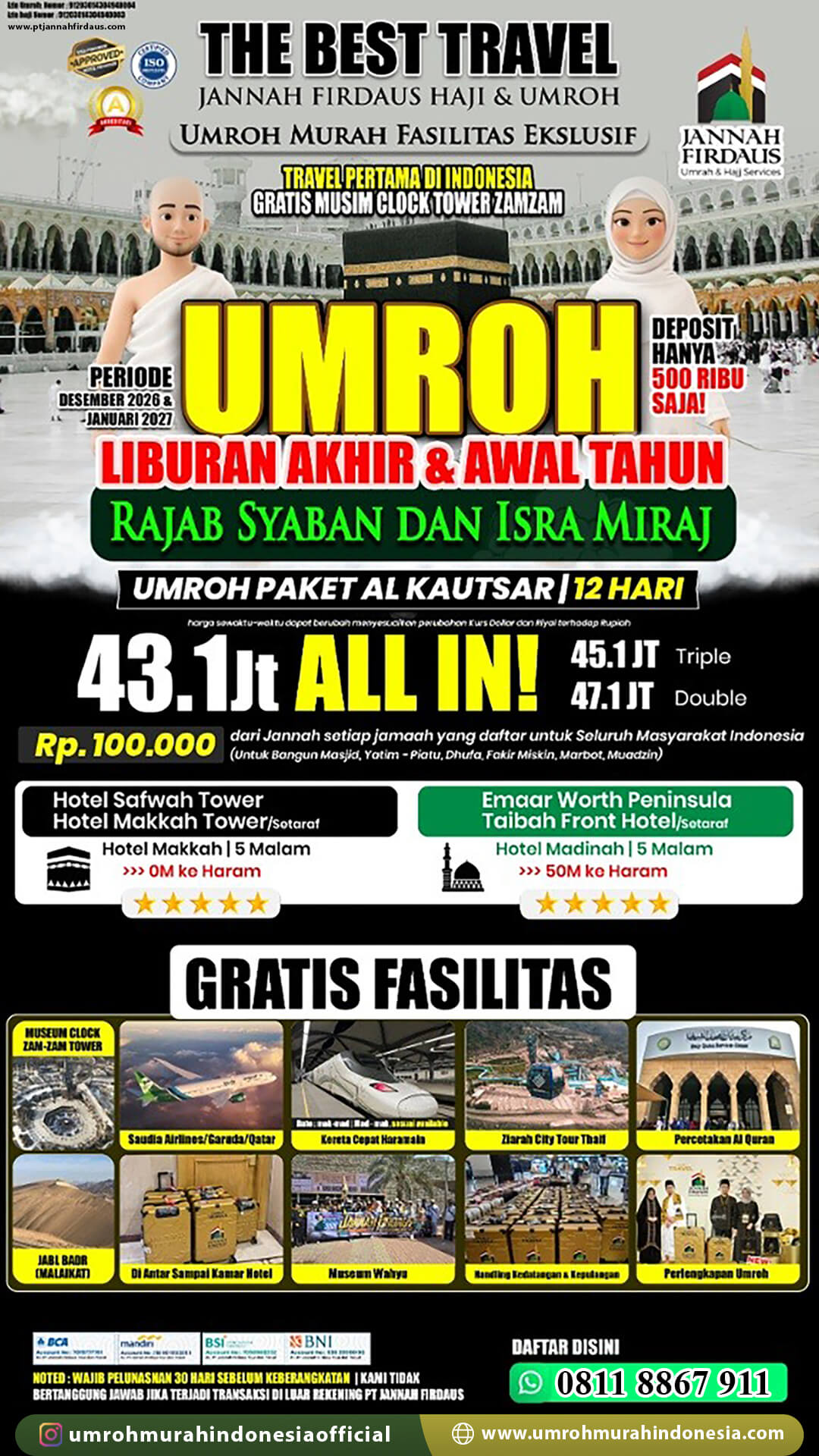 - H-60 Sebelum keberangkatan wajib masuk pembayaran sebesar Rp. 5 Juta
